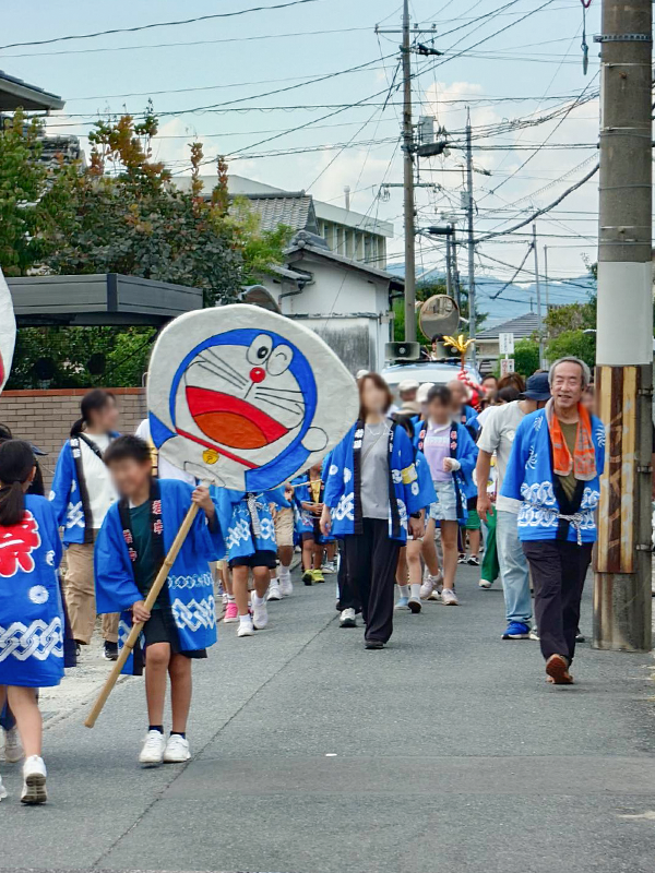 お昼からは子ども会の皆さんと一緒に、町内を元気に練り歩きました。